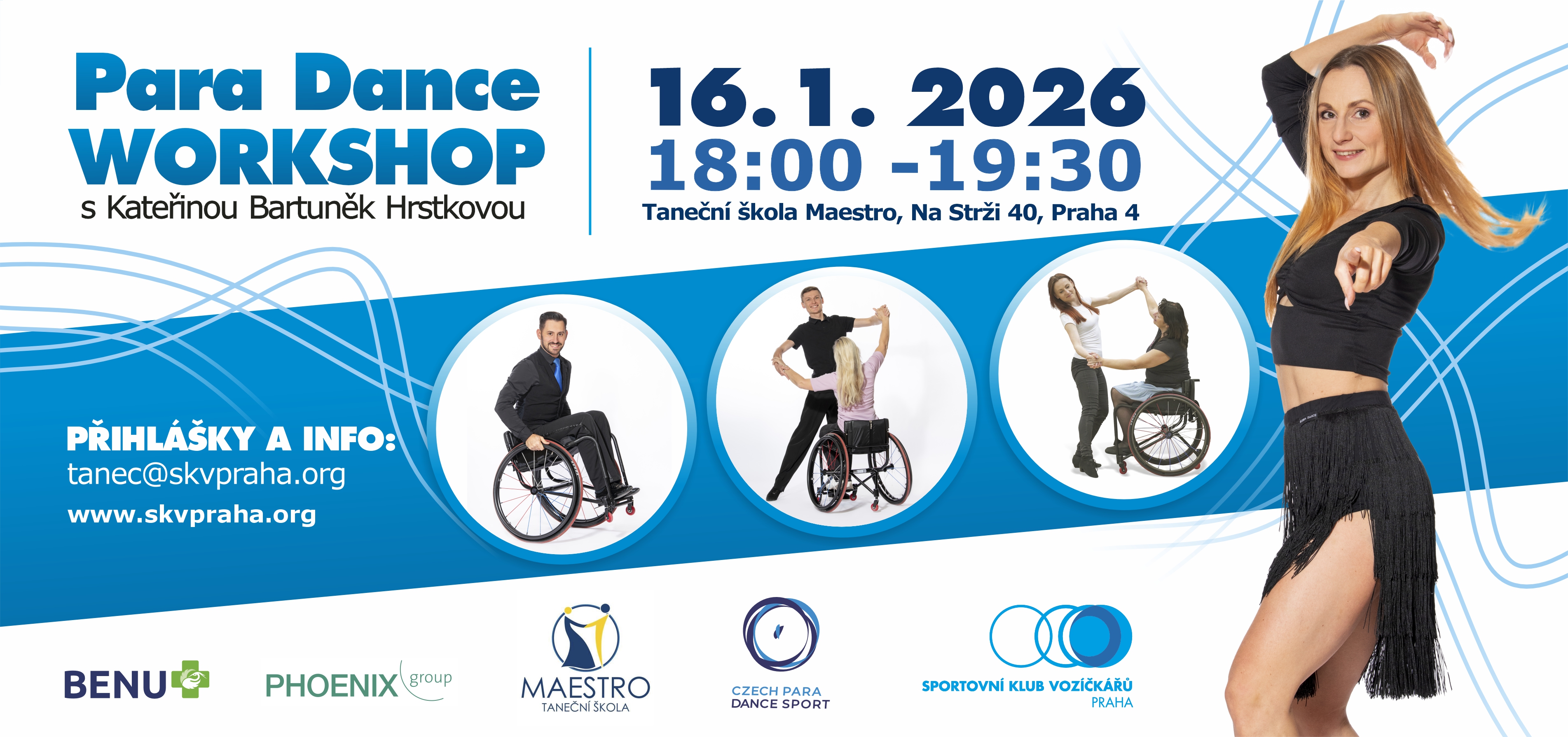 Už 16. 1. 2026 v Taneční škole Maestro můžete objevit svět tance bez bariér s úžasnou Kateřinou Bartuněk Hrstkovou.