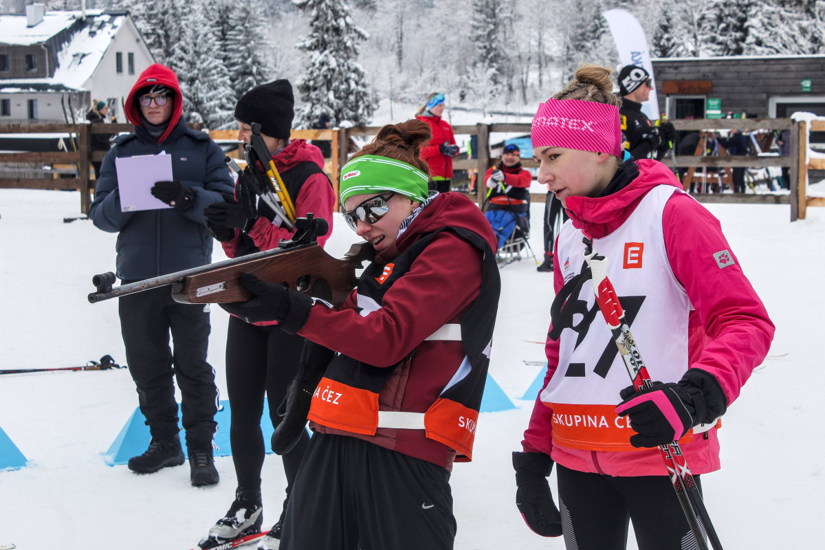 Ve dvojicích nebo štafetách si můžete vyzkoušet biatlon v podobě běhu na běžkách spojený se střelbou z laserové pušky.*