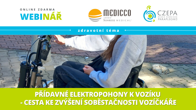 CZEPA zve na bezplatný webinář k tématu podpory lidí po poranění míchy. Webinář s názvem "Přídavné elektropohony k vozíku – cesta ke zvýšení soběstačnosti vozíčkáře" bude vysílán v úterý 9. 12. 2025 od 16 hodin. Autorkou webináře je Zdeňka Faltýnková, spinální specialistka asociace CZEPA. Spoluúčastníkem bude Jaroslav Filsák, lektor BanalFatal! a zástupce společnosti Medicco.