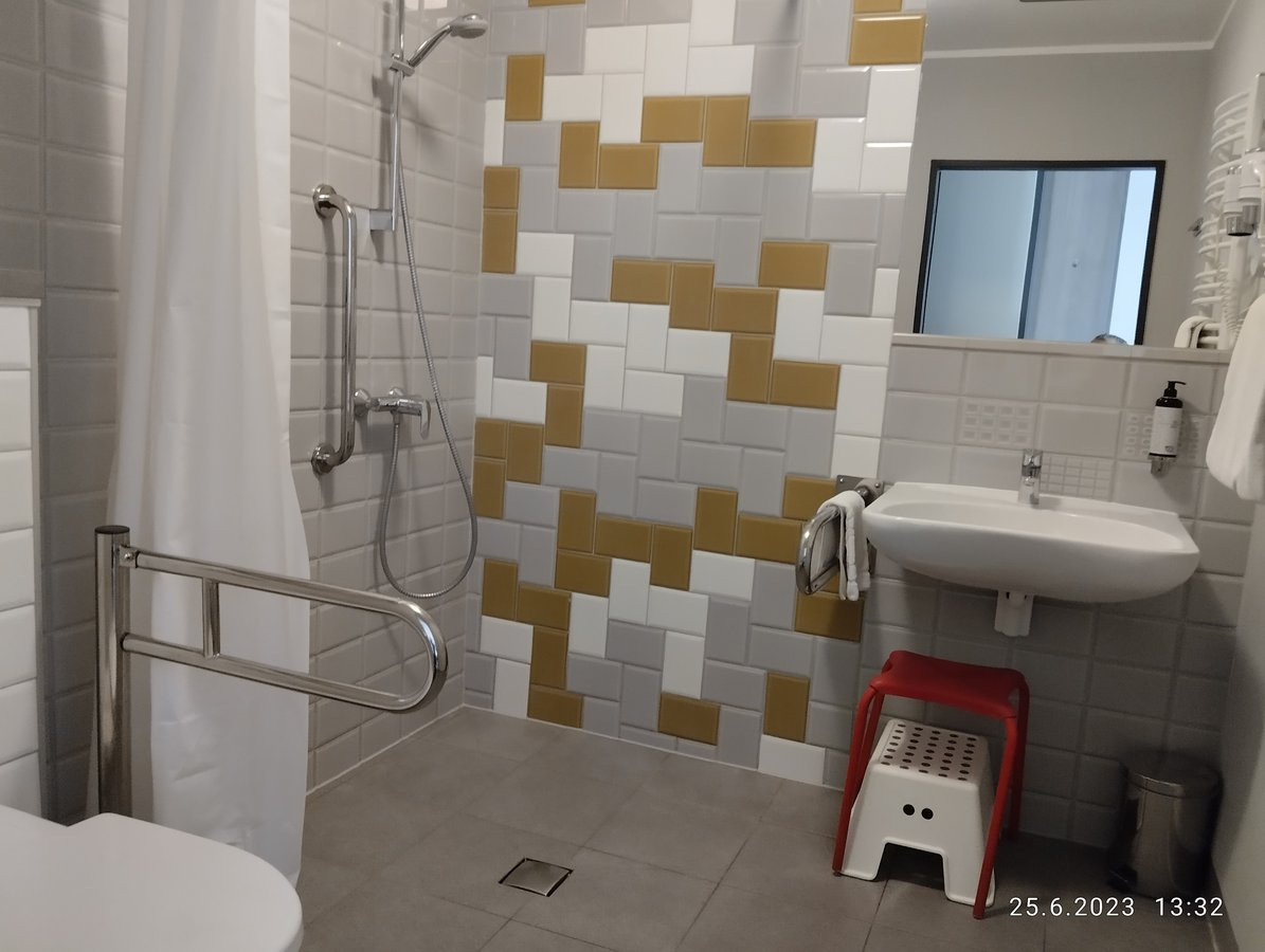 Disponuje dvoulůžkovým bezbariérovým pokojem a koupelnou, kde je k mání židlička do sprchy. Na pokoji je televize, wifi, ale není lednice. Restaurace je rovněž zcela bezbariérová. V hotelu je výtah![]()
