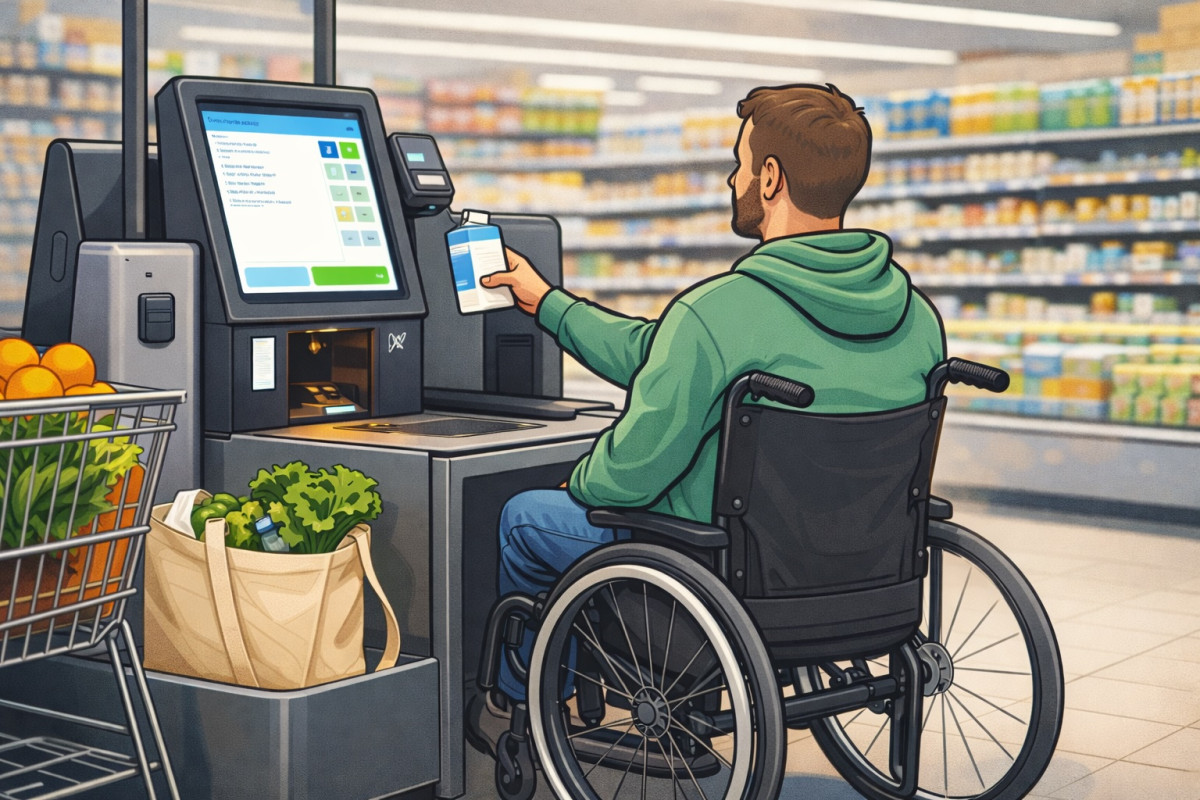 Nikde však není zmínka o přístupnosti samoobslužných pokladen pro osoby v seniorském věku, nebo pro osoby se zdravotním postižením. Nejen, že část populace neumí elektronickou technologii tak, aby dokázala skenovat zboží a platit kartou, telefonem, či jiným zařízením, ale zvláště pro osoby se zdravotním postižením může být vlastní pokladna nepřístupná. Už jsme dostali několik upozornění na potíže se skenováním, se čtením na displeji či manipulaci se zbožím. Prodejci preferují bezhotovostní platby, což může být pro některé osoby, které nemají vlastní účet, problém. Obchodní řetězce přiznávají, že je to pro ně výhodné, především z hlediska personálního, ale i rychlosti prodeje.