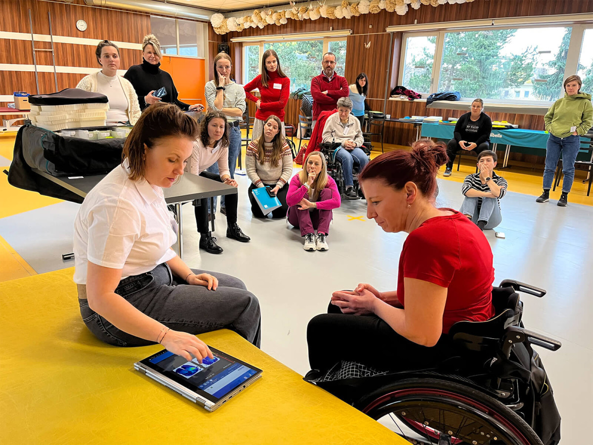 Reálná ukázka zaměření sedáku Libella Seat Varia na figurantce v rámci workshopu na semináři