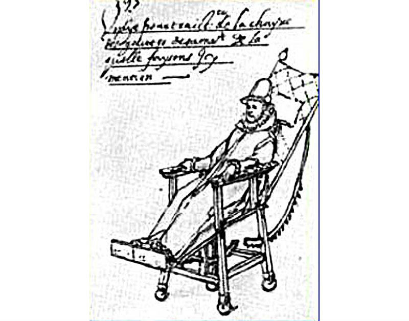 V roce 1595 byl nakreslen španělský král Filip II. sedící v křesle s kolečky na každé noze. Bylo neohrabané a těžké a musel ho zcela jistě tlačit sluha či jiný šťastlivec. Král Filip totiž trpěl v pozdějším věku dnou a křeslo mu vyrobil na zakázku neznámý vynálezce. V té době se mu říkalo ne úplně korektně: invalidní křeslo. Naštěstí tento název, jak dnes dobře víme, nepřežil do současné doby.