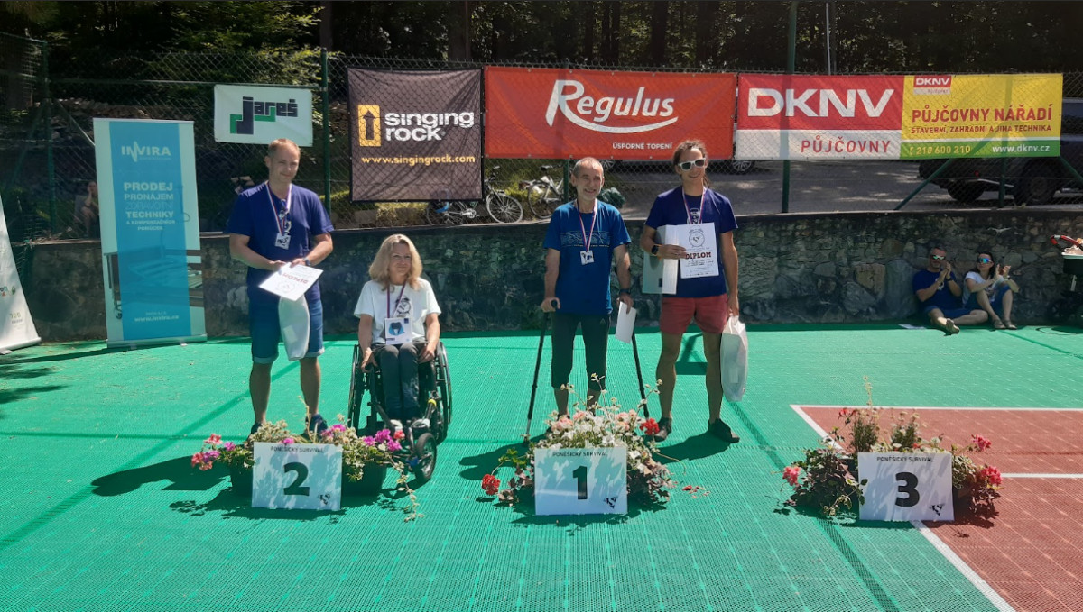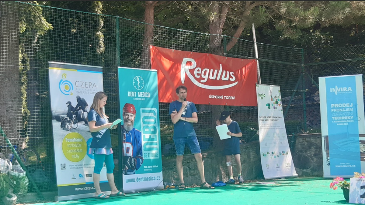 Do tradiční kategorie "vozíčkář + choďák" se přihlásili Jiří Vozda (s Vojtou Vozdou) a Gábina Knapová (s Láďou Turzíkem). Navzdory náročnosti tratě a únavě oba absolvovali závod s úsměvem, za což sklidili uznání a potlesk všech zúčastněných závodníků i pořadatelů. Gratulujeme!