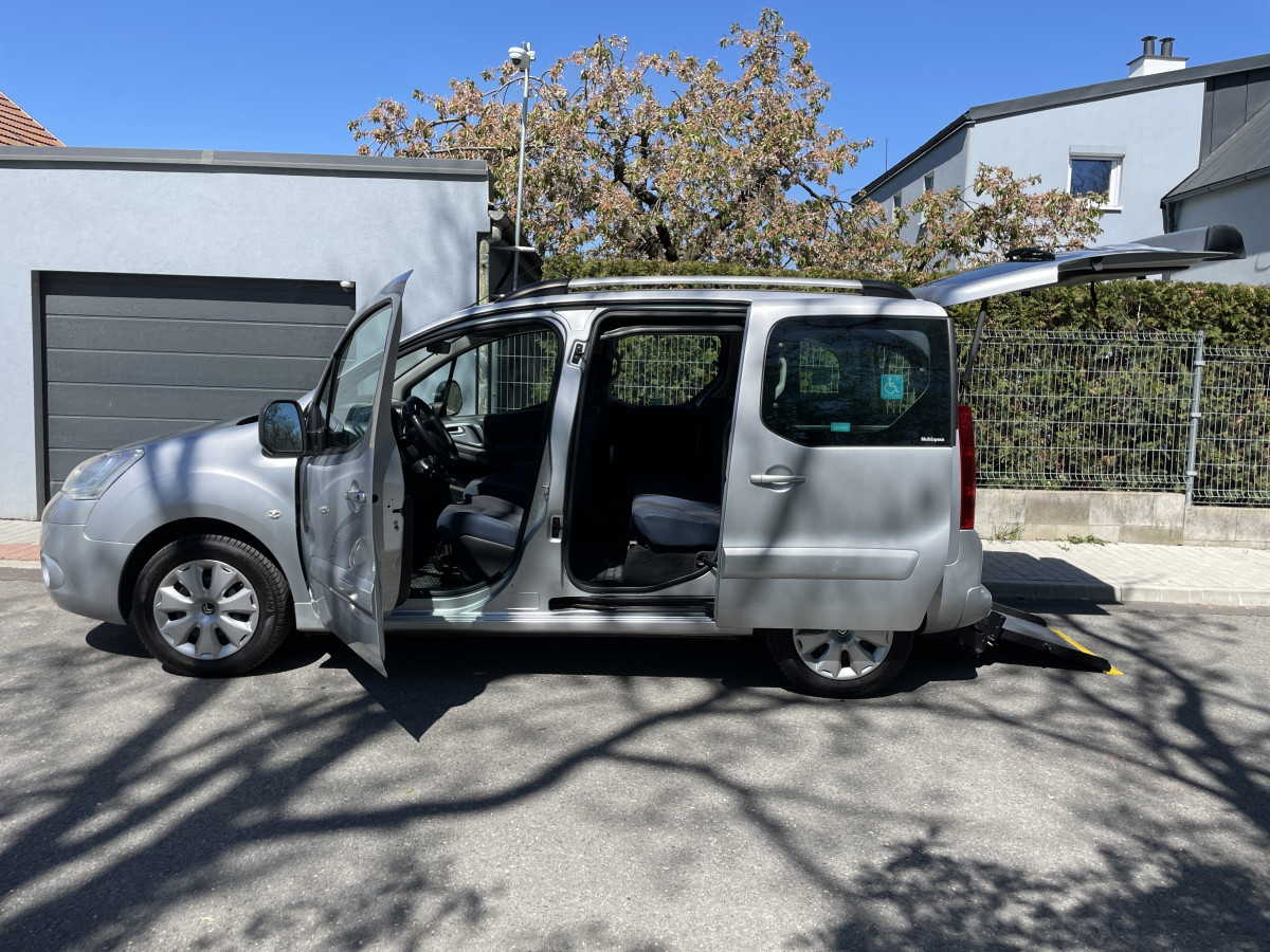 Citroën Berlingo B9 Multispace, vybavený homologovanou sklopnou nájezdovou plošinou, pro snadný nájezd i přepravu vozíčkáře přímo na invalidním vozíku. Koupeno v ČR, servisní kniha. Model 2012, 130.000 km. Výbava: motor 1.6 HDI (68 kW, EURO 5), klimatizace, servo, ABS, el. výbava, palubní počítač, centrál, alarm, originál autorádio, tónovaná okna, hagusy atd. TK + ME platné do 10/2027. Cena 265.000,-. Možnost čerpat příspěvek na zdravotní kompenzační pomůcku. Tel.: 792 423 271, e-mail: kmodra@email.cz