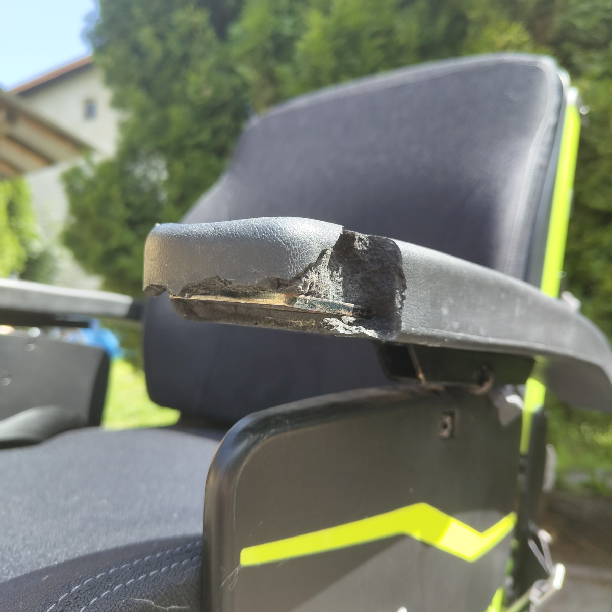 Je zde jediná vada - kus levé opěrky (pěna) je odtržený - viz. foto.