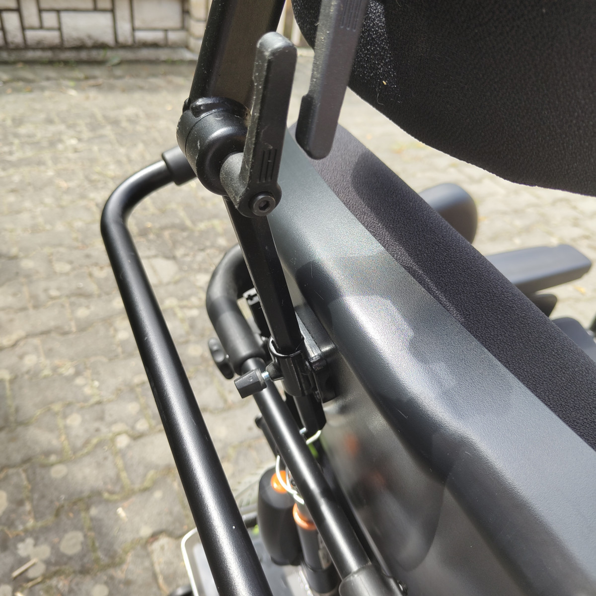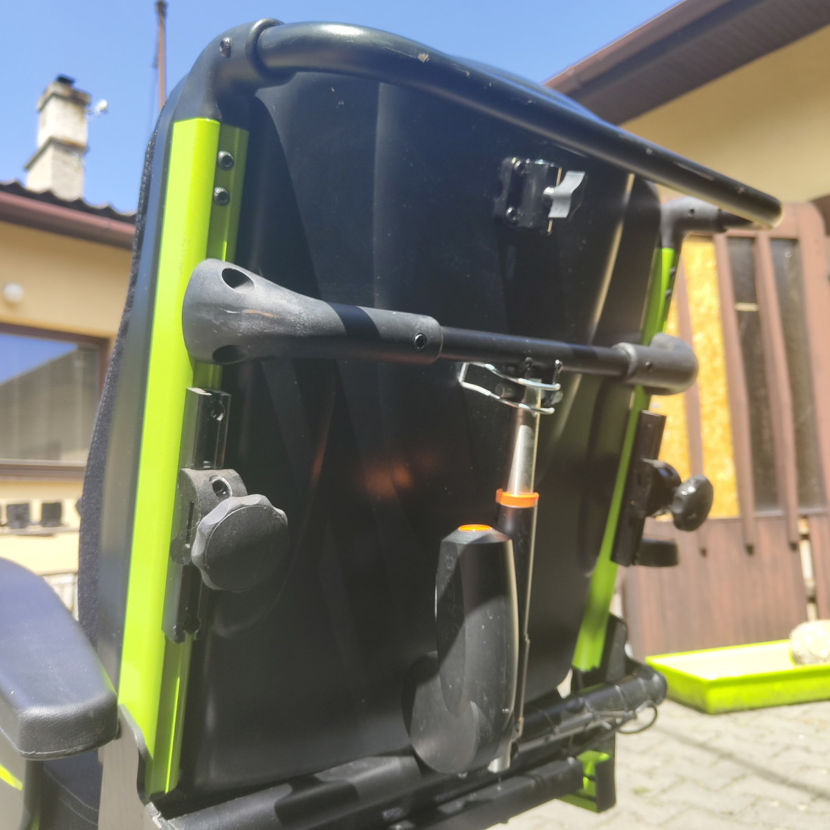 Tento vozík má polohovací vlastnosti - člověk v něm může sedět i ležet a lze polohovat vozík i pro vyvýšení a snížení pro lepší manipulaci. Vozík má 5 odnímatelných části - opěrka hlavy (lze nastavit výška), opěrky na ruce (na lokty jsou pevně k vozíku s možností polohování a další na úrovni paží) a stupačky na nohy (polohovací). Na vozíku je taky bezpečnostní pás a za zády menší prostor na odkládání věcí.