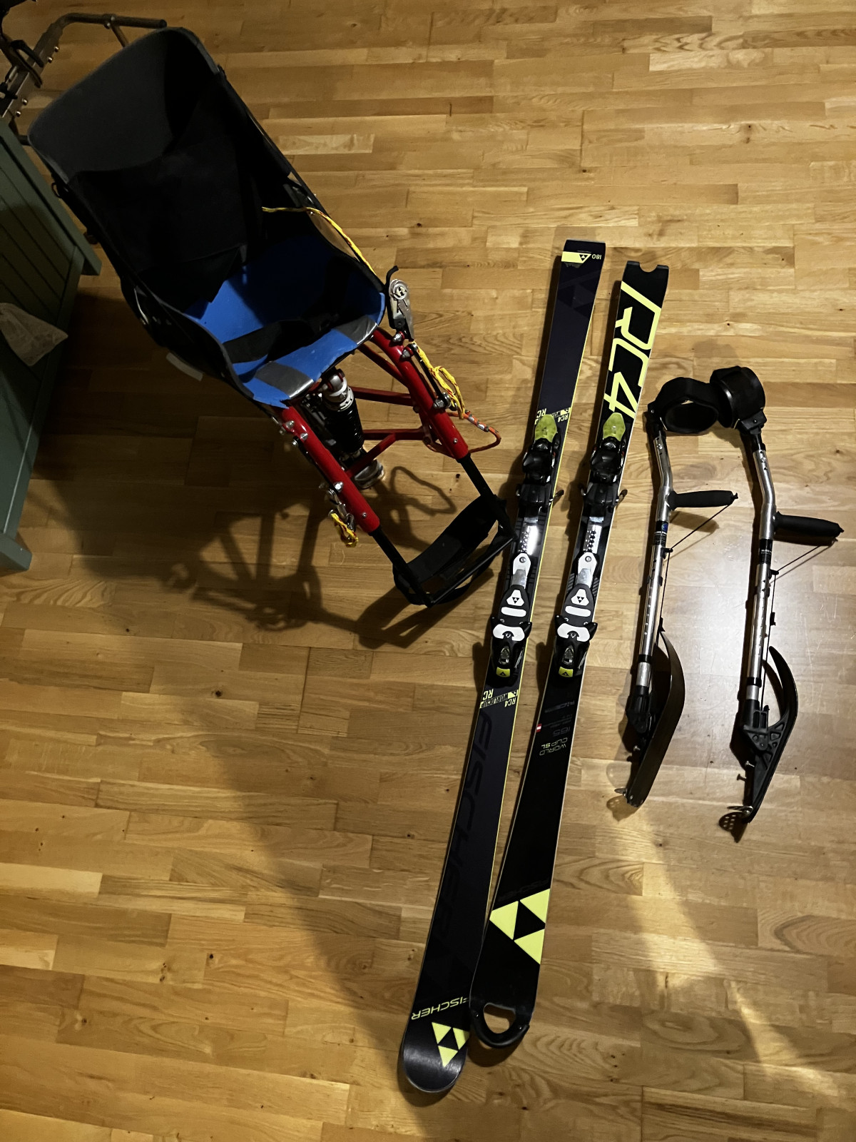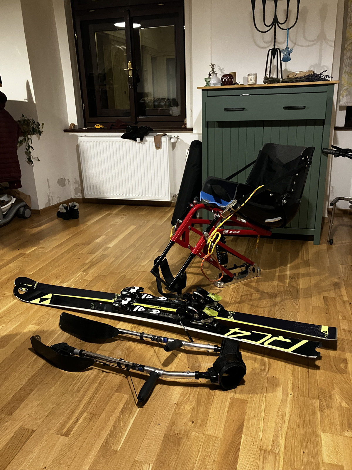 Prodám monoski šíře 38-40 cm s vysokými zády (je možné si nechat vyrobit nižší) zn. Praschbereger. Součástí výbavy jsou 2 lyže a 2 páry stabilizátorů. Monoski byla pořizovaná už jako použitá, ale je v dobrém stavu. Cena za komplet je 27.000 Kč.