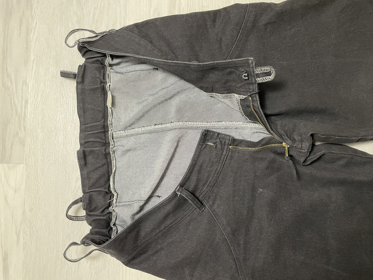 Nabízím k prodeji pánské rifle velikosti XL s upraveným střihem pro pohodlnější sezení na vozíku za 600 kč.