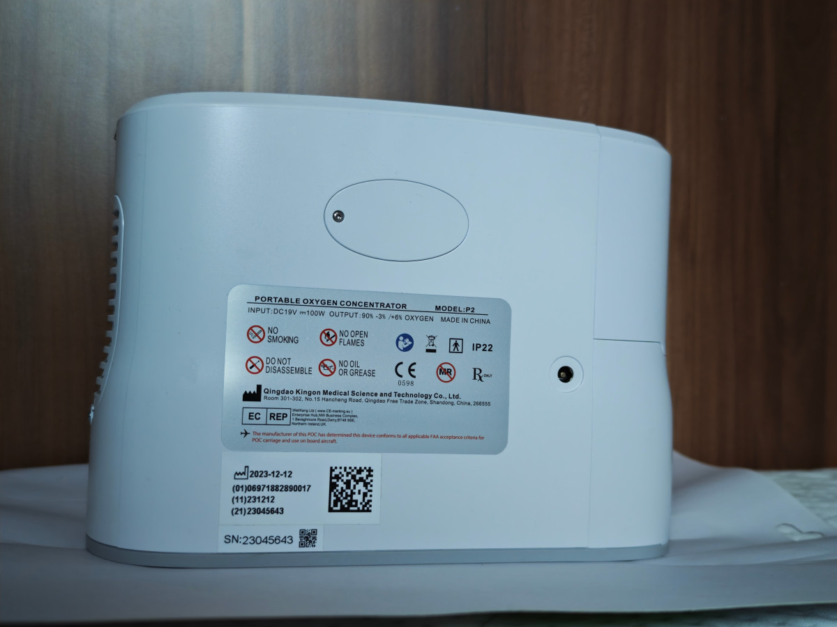 Přenosný kyslíkový koncentrátor KINGON P2 s baterií, 5L/min, 96%. Jeden z nejmenších a nejlehčích z přenosných koncentrátorů, váží necelé 2 kg (včetně baterie). Zakupován 3/2024. Vhodný pro pacienty s CHOPN a alergiky. Nízká hlučnost, 5 stupňů nastavení průtoku kyslíku, intuitivní ovládání pomocí tlačítek s přehledným LCD dispejem, výdrž baterie až 4 hodiny. Součástí nabídky: přenosný kyslíkový koncentrátor, nové nosní kanyly, baterie + 1 náhradní baterie, adaptér do auta a praktická přenosná taška. Původní cena 68000 Kč (61500 Kč koncentrátor, náhradní baterie 6500 Kč), nyní 45000 Kč.
