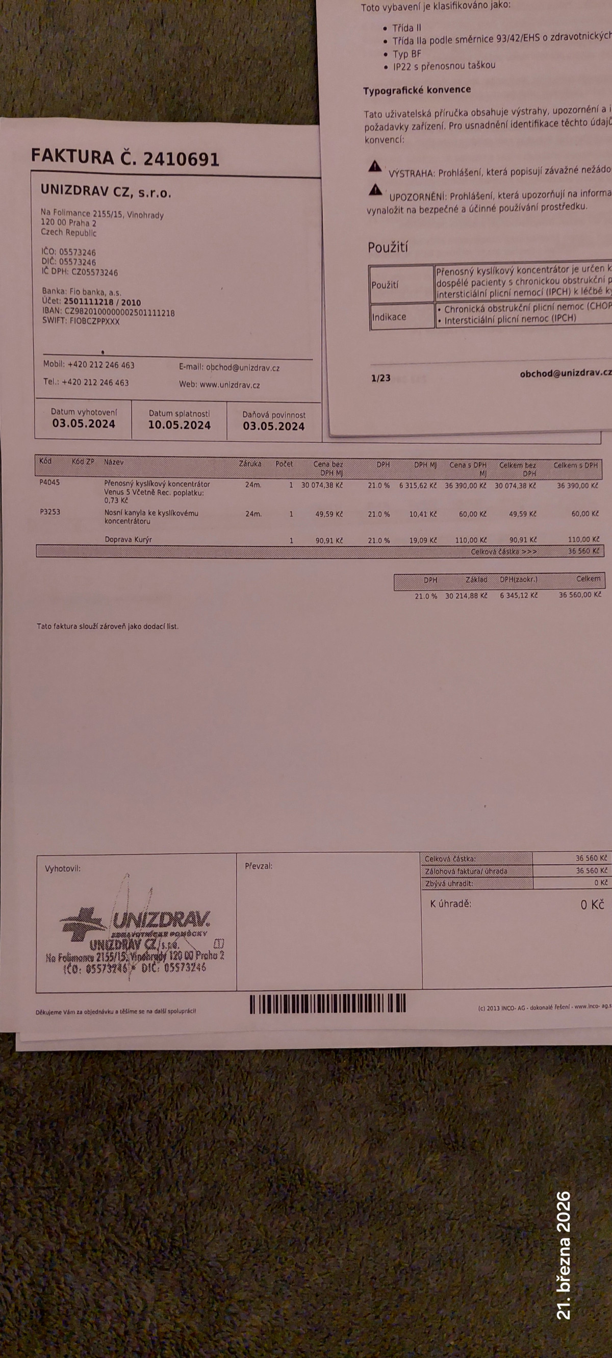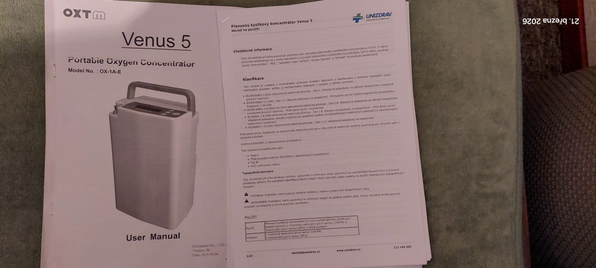 Prodám v záruce: Přenosný kyslíkový koncentrátor VENUS 5