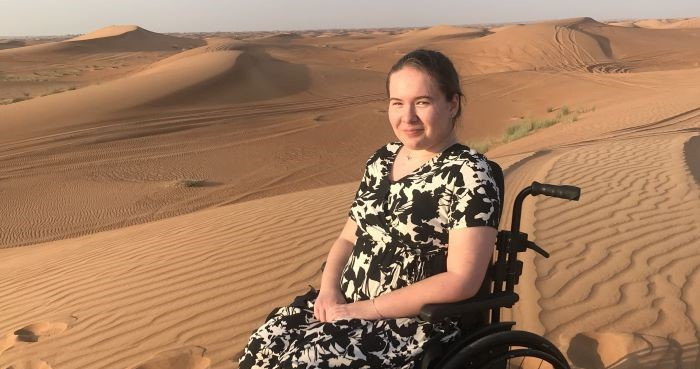 teta Kateřina: Poušť v Dubaji je skvělý zážitek asi pro každého. Když jsme začaly cestu do Emirátů plánovat, hrozně jsem si přála, aby Síma měla možnost tu nádheru vidět. Ale popravdě to vypadalo hodně nereálně – s vozíkem do pouště? Nakonec se nám to ale podařilo vymyslet a díky úžasné pomoci a ochotě místních i zrealizovat.